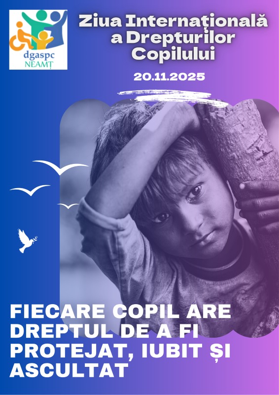 20 noiembrie nu este doar o dată în calendar, ci un moment în care privim cu recunoștință spre copii și spre drepturile lor. Este o zi care ne invită să reflectăm la felul în care putem contribui, fiecare dintre noi, la o lume mai dreaptă și mai blândă pentru ei. Copiii trebuie să știe că au dreptul la respect, la iubire, la visuri îndrăznețe și la un viitor luminos. Le dorim tuturor o copilărie frumoasă, plină de încredere, curaj și bucurie!”, a declarat Cristina Păvăluță, director general al DGASPC Neamț.