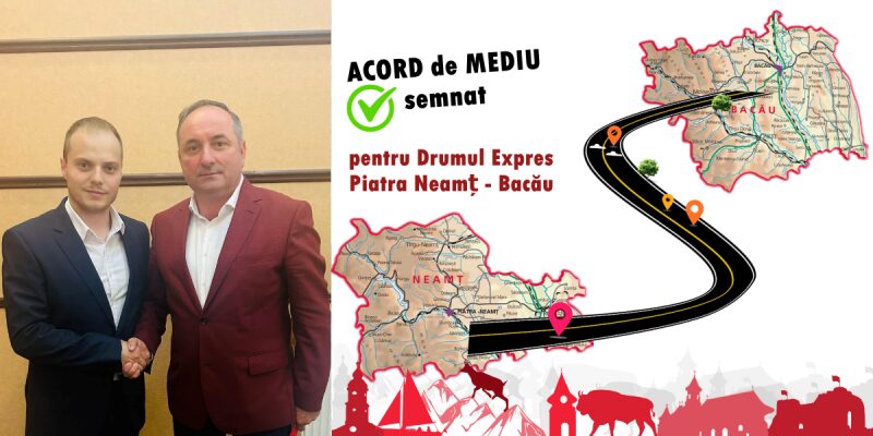 Așa cum a garantat Daniel Vasilică Harpa, președintele PSD Neamț și președintele ales al Consiliului Județean Neamț, Drumul Expres Piatra Neamț-Bacău devine o certitudine! După aprobarea indicatorilor tehnico-economici la sfârșitul lunii mai, marți, 25 iunie, Laurențiu Alexandru Păștinaru, președintele Agenției Naționale pentru Protecția Mediului (ANPM) și membru PSD Neamț, a semnat Acordul de Mediu. Acest eveniment marchează debutul fazei de construcție a proiectului rutier pentru tronsonul de drum expres dintre Piatra-Neamț și Bacău.