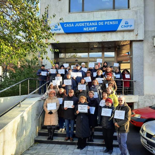 Protestele continuă la Casa de Pensii și la Direcția de Sănătate Publică Neamț. Se anunță negocieri la Ministerul SănătăţiiSalariații de la Casa Județeană de Pensii Neamț sunt determinați să continue protestul prin care cer majorarea drepturilor salariale. Doleanța angajaților se referă la alinierea salariilor la nivelul colegilor de la Casa Națională de Pensii. Și pe 21 noiembrie funcționarii și-au reocupat locurile pe treptele instituției purtând pancarte prin care își arată nemulțumirile.