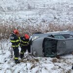 Accident la Bălușeni: mașină răsturnată pe carosabil, șoferul a ajuns la spital