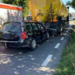 FOTO. Accident produs între un autoturism și un autotren la Târgu-Neamț