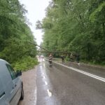 Neamț. Urmările furtunii. Copac căzut pe șosea la Vânători Neamț