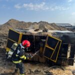 Neamț. Incendiu la un utilaj folosit pe șantierul autostrăzii