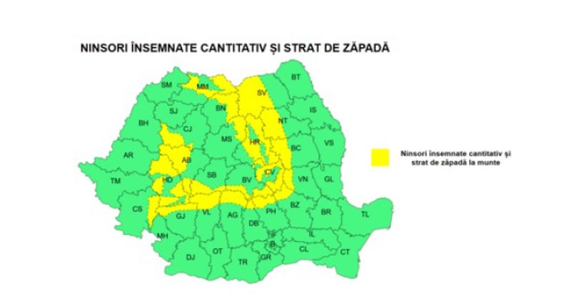 Pentru județele Suceava, Neamț și Bacău, „Fenomene vizate și zone afectate: ninsori însemnate cantitativ și strat de zăpadă la munte, la altitudini în general de peste 1400 m.