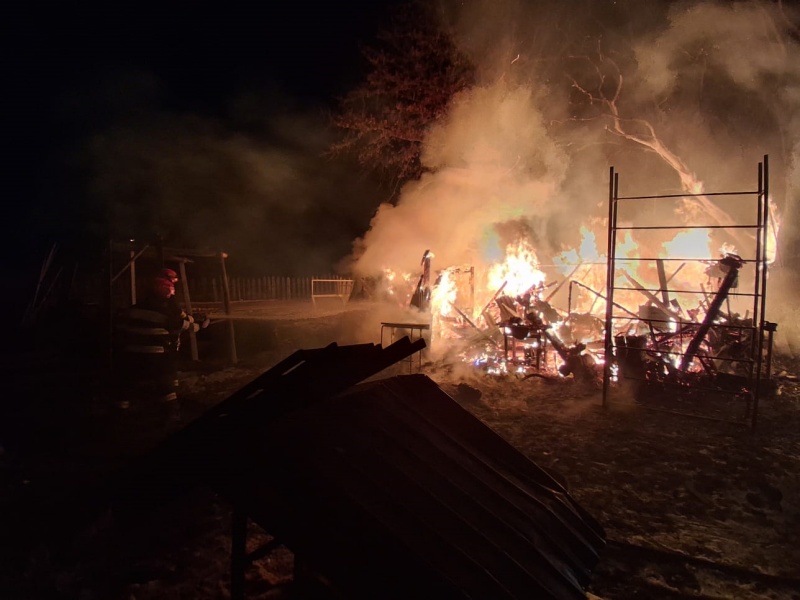 „La sosirea pompierilor incendiul se manifesta generalizat la o construcție din lemn (folosită pentru prelucrarea lemnului).Forțele de intervenție au acționat pentru localizarea și lichidarea incendiului în urma căruia au ars construcția din lemn cu suprafața de 60 mp și bunurile din interiorul acesteia (unelte și scule folosite în prelucrarea lemnului).